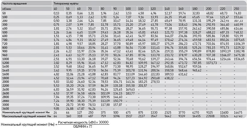 вами значение расчетной мощности. Нужный типоразмер гибкой