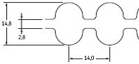 Шестигранный ремень имеет поперечное сечение равное двум сечениям классического клинового ремня и предназначен для силовых передач, где один или несколько приводных шкивов попеременно вращаются в разных направлениях.