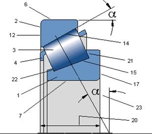 | 23 | Угол контакта в подшипнике. |